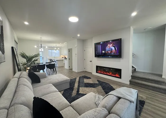 The spacious 163 m² Family Friendly Rockies Retreat At Glacier Ridge Nw Calgary apartment is located 4.9 km from Bowmont Park and about 15 minutes' drive from the Calgary Alberta Temple. Guests can make use of Wi-Fi for both business and leisure purposes.